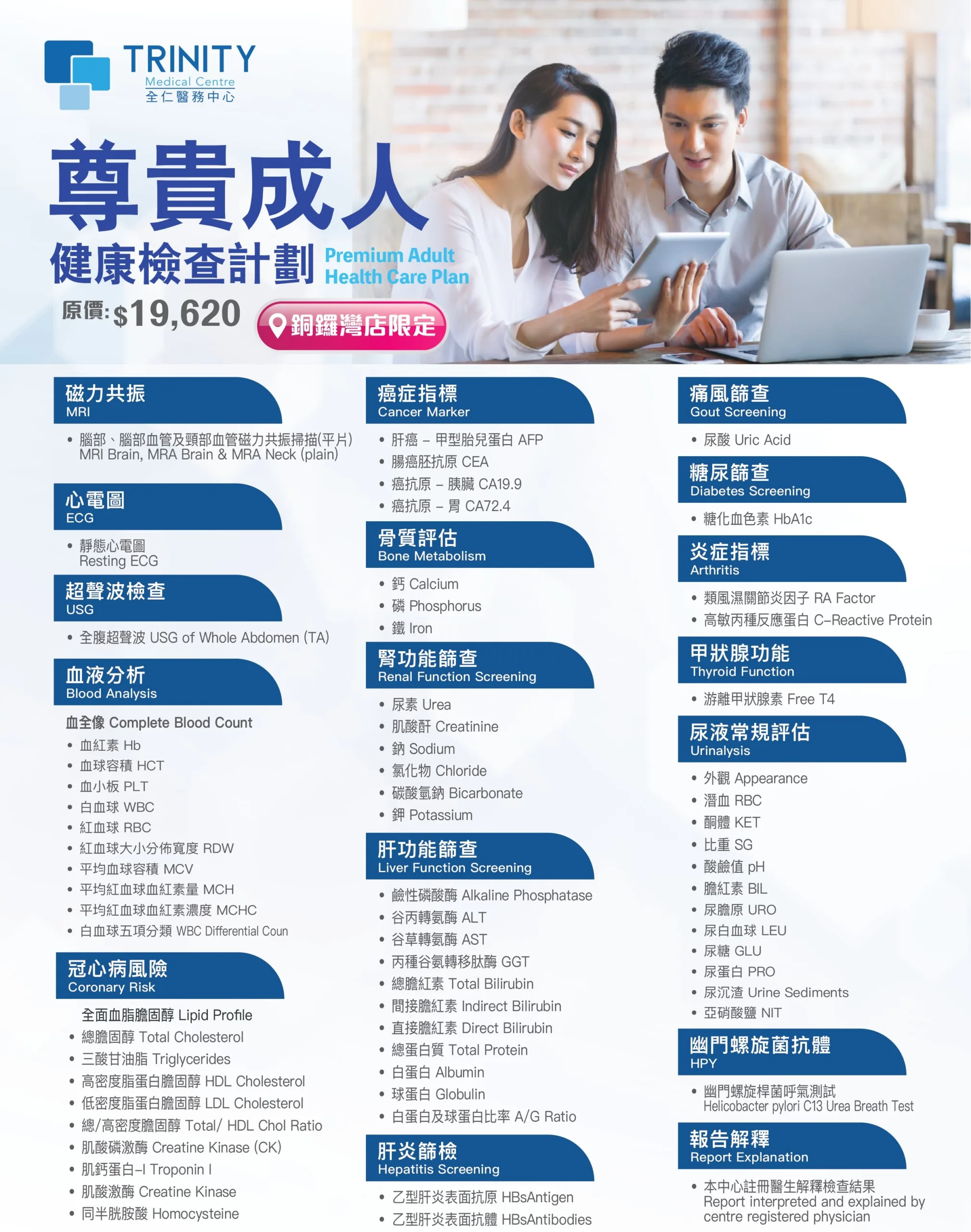 - The health check-up plan is only valid at Trinity Medical Centre in Causeway Bay. The offer expires on November 30, 2024. Customers must undergo the relevant examination on or before the expiration date; the offer becomes void after this date.